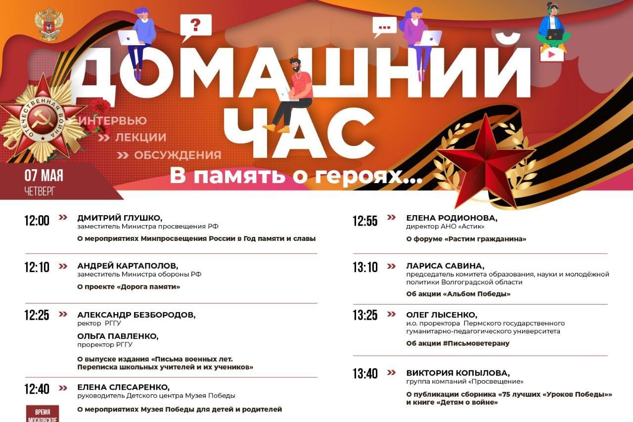 В 12:00 по московскому времени в официальном сообществе Минпросвещения России «ВКонтакте» состоится онлайн-трансляция «В память о героях…» с участием заместителя Министра просвещения Российской Федерации Дмитрия Глушко.